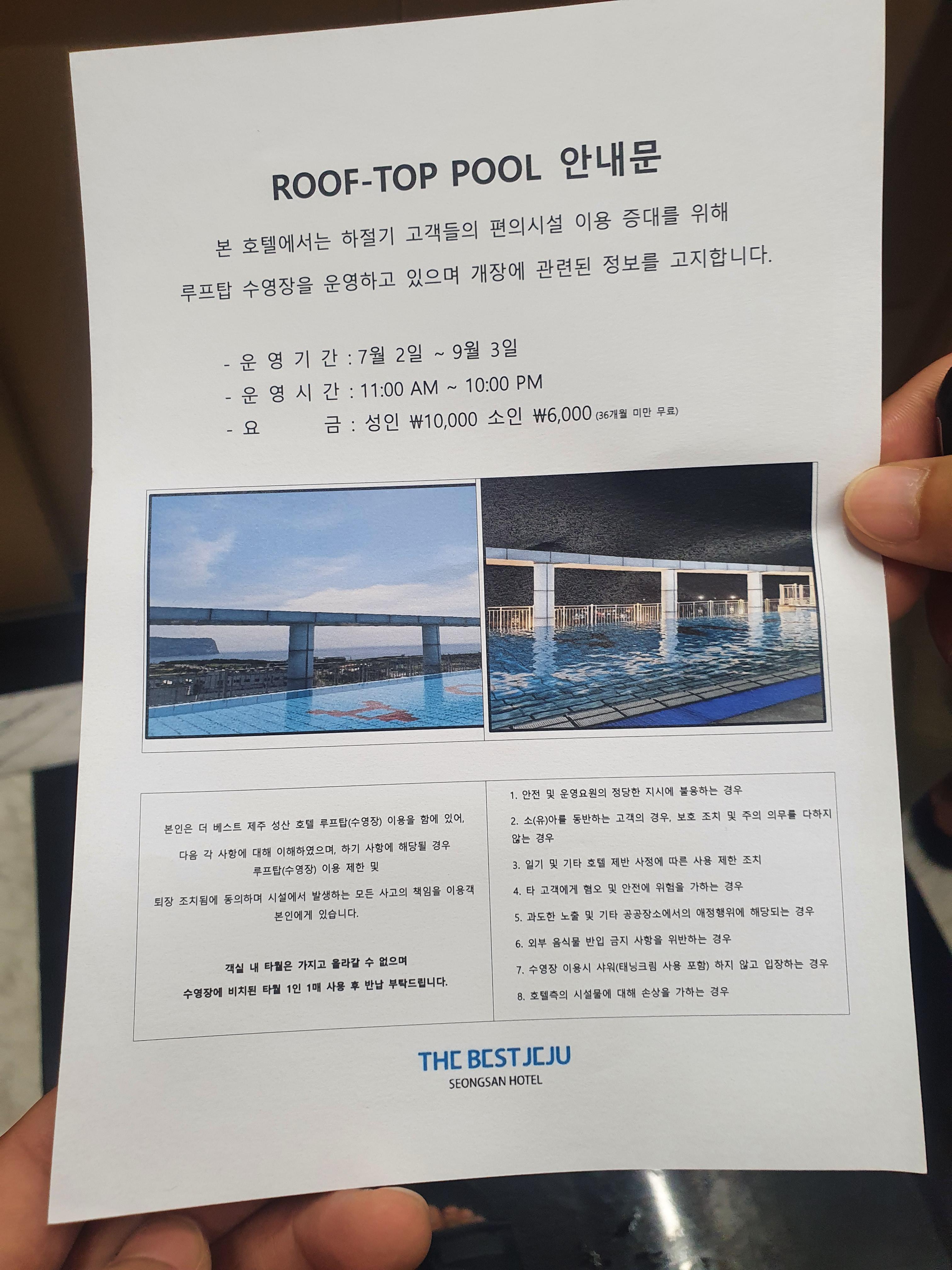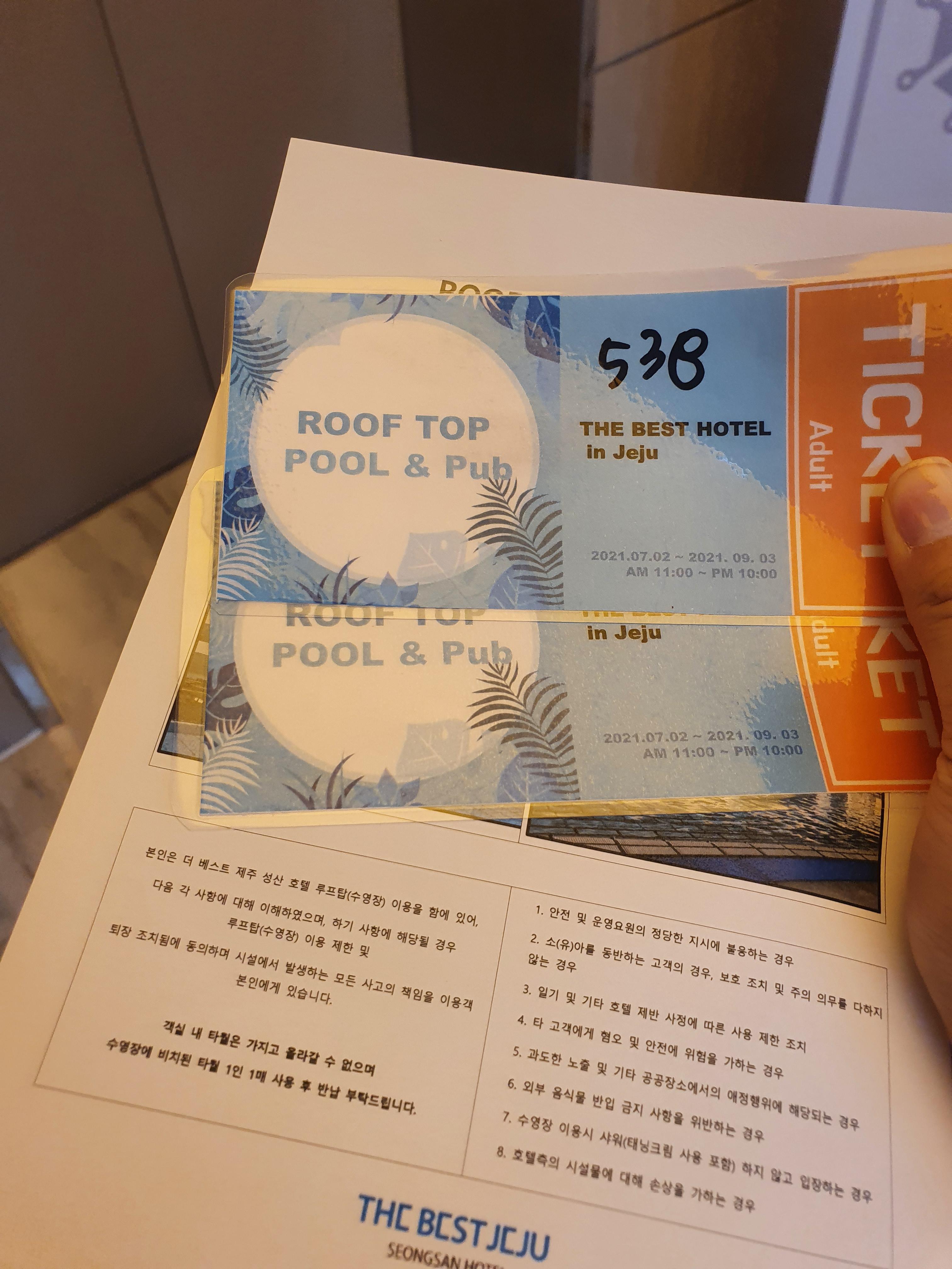 옷을 갈아입고 로비 가서 20,000원을 지불하고 수영장 이용권을 받았어요.