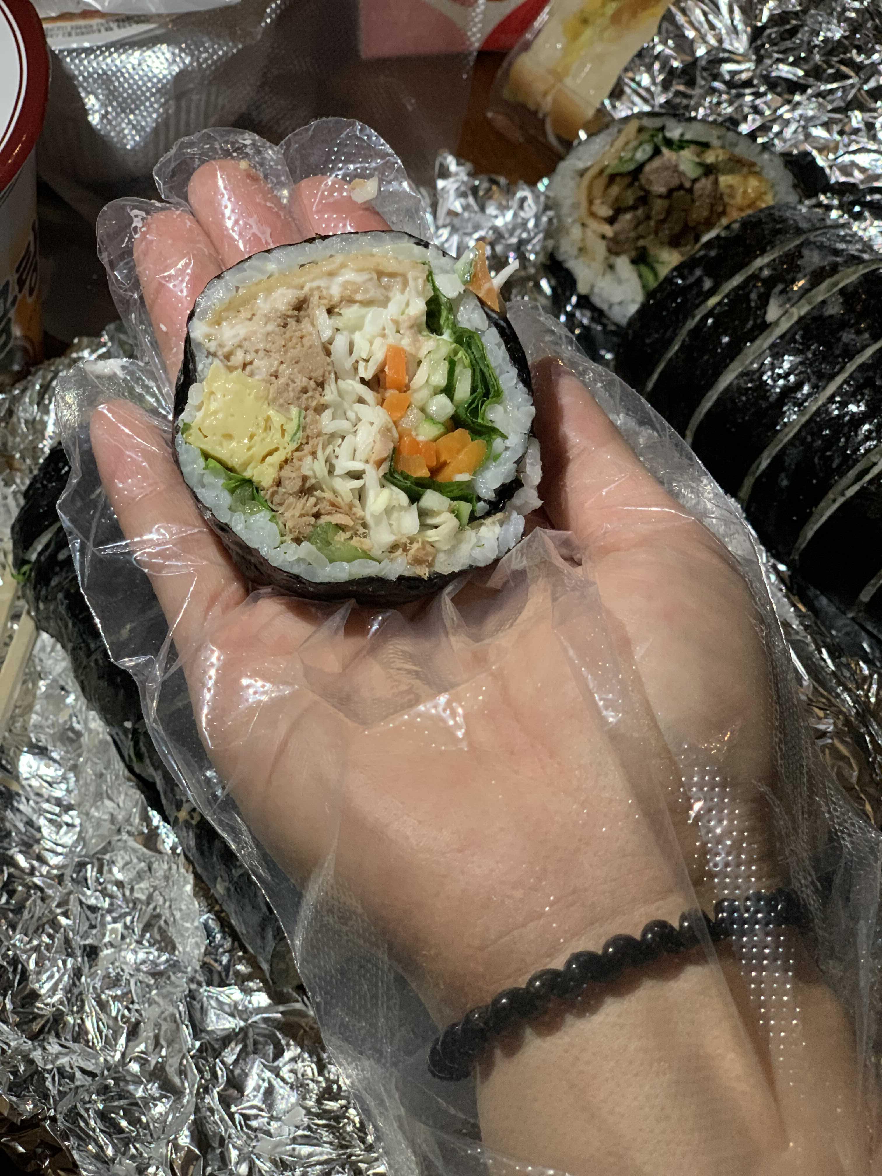 참치로얄은 기름기를 뺀 볶음 참치와 야채가 들어가 있는 샐러드 김밥.