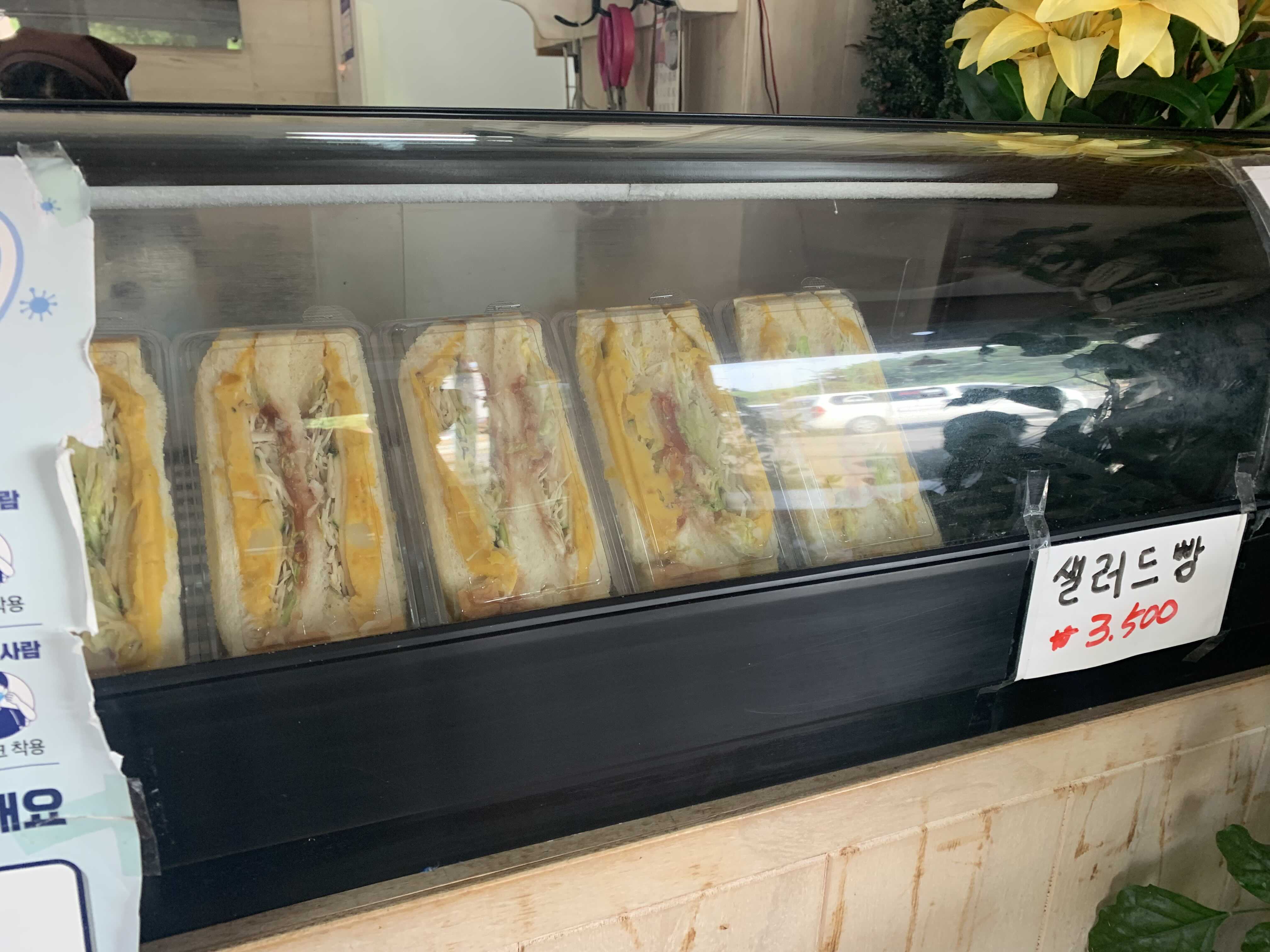 김밥이 너무 커서 라면도 다 남겨서 샌드위치는 냉장고에 넣었다 먹었는데