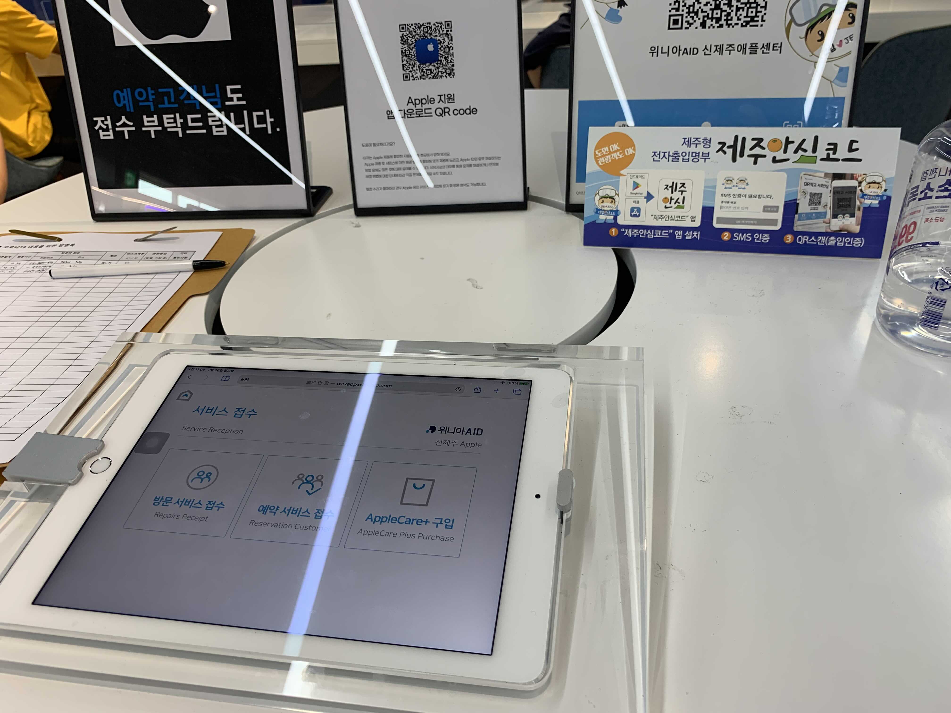 제주 안심 코드 등록과 수리 접수를 하고 대기했어요.