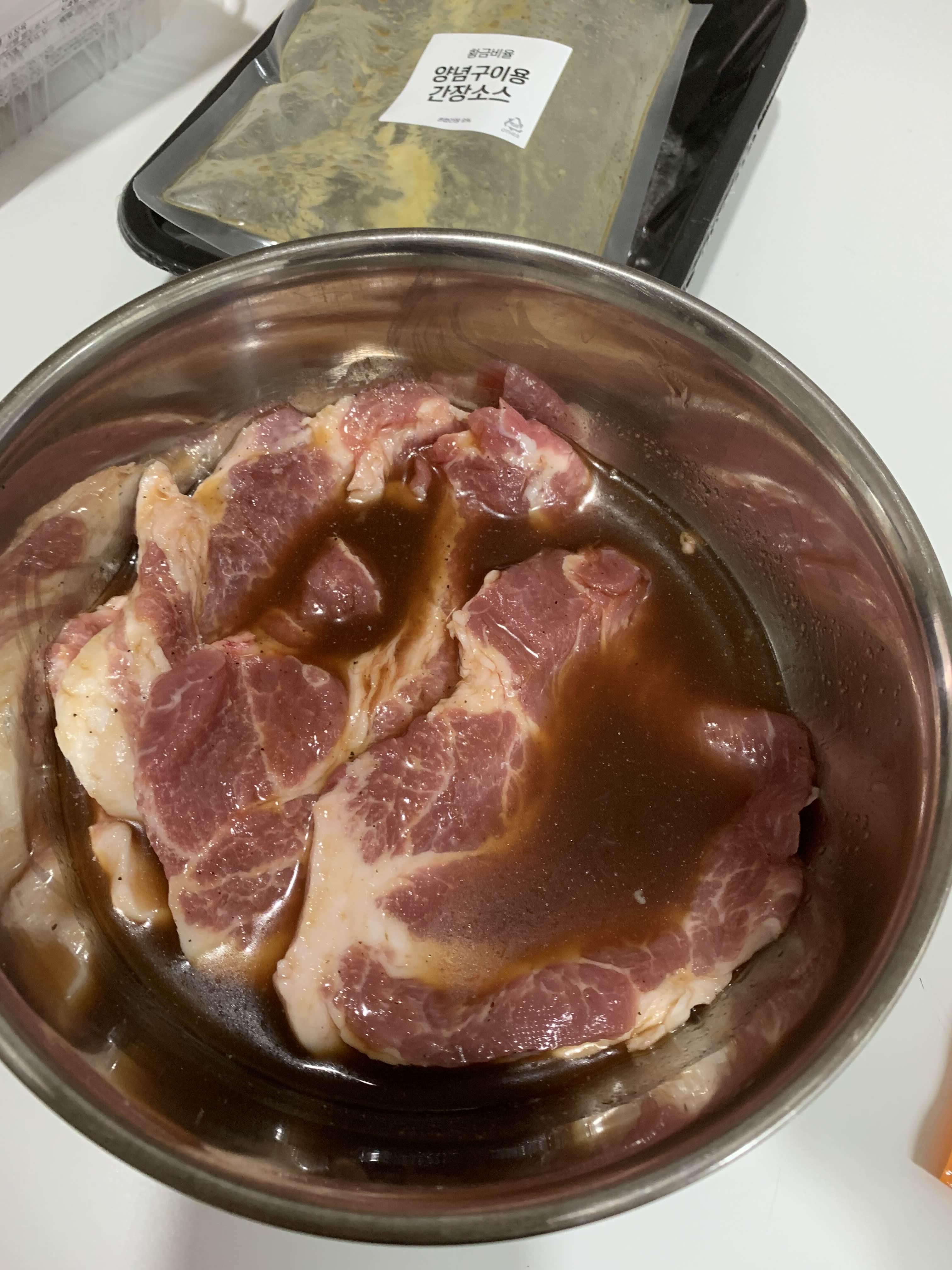 돼지목살과 양념구이용 소스를 쉐킷 쉐킷
