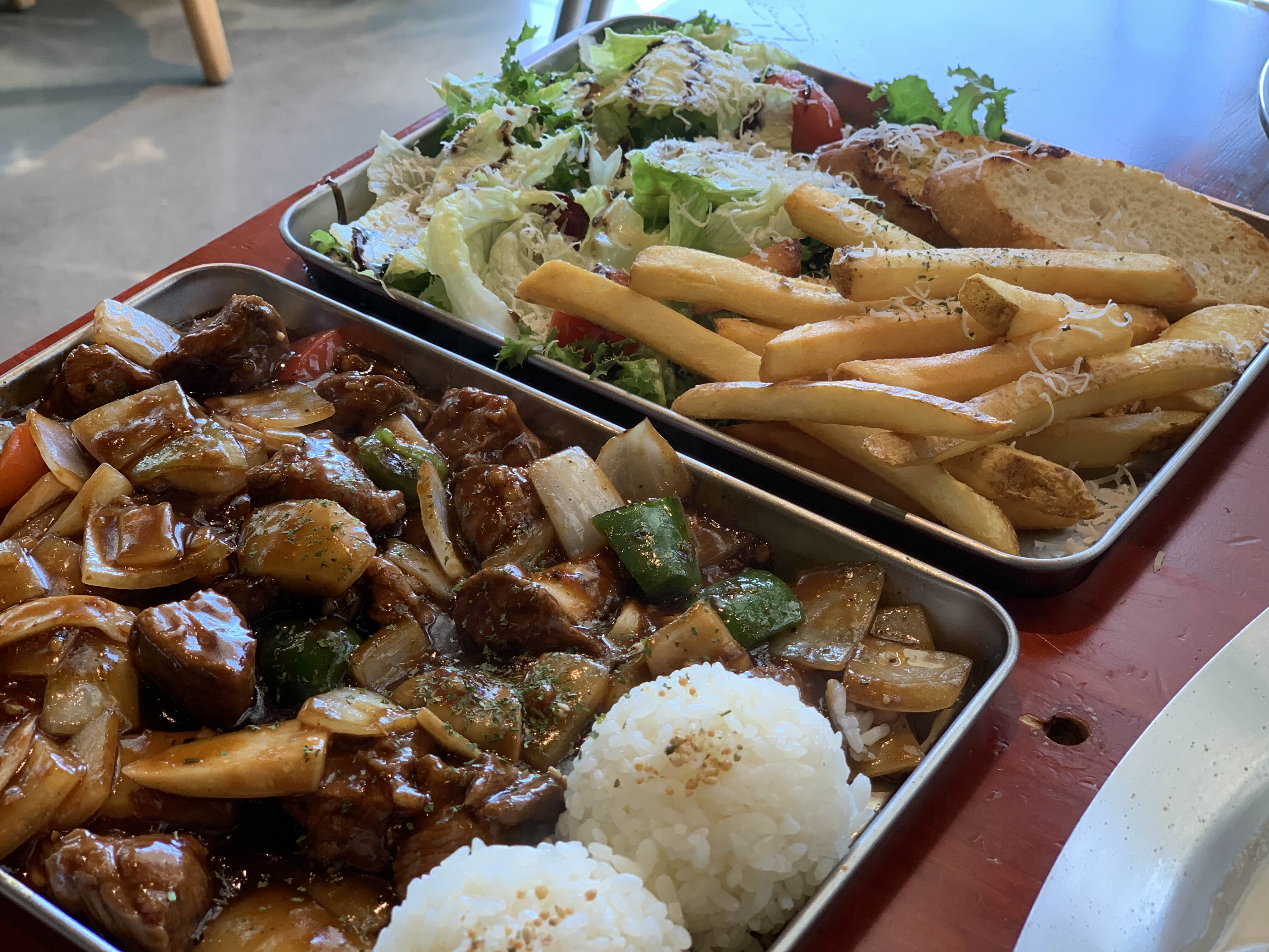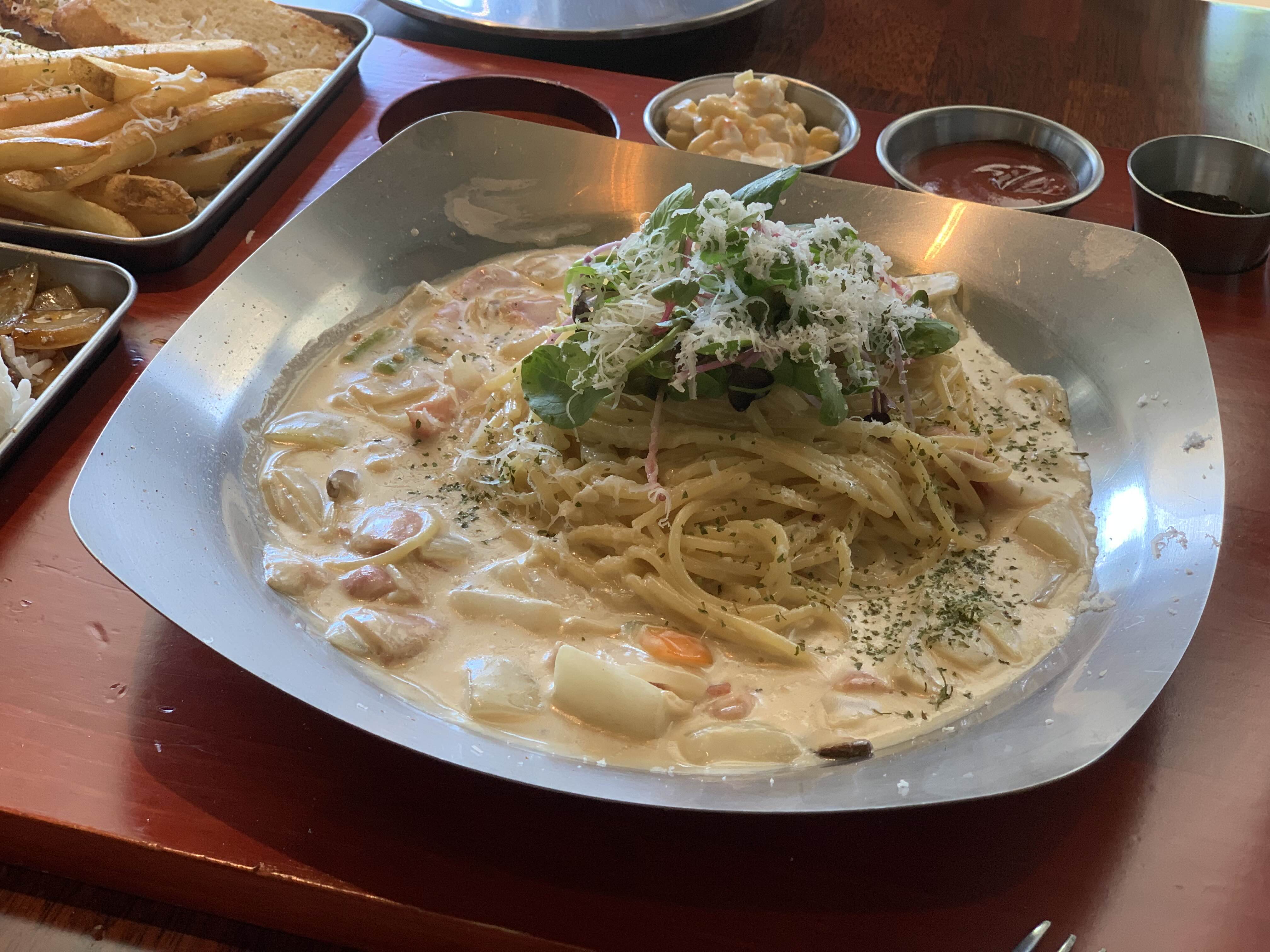 까르보나라는 쏘쏘.. 감자튀김, 빵, 샐러드 너무 맛있었어요!