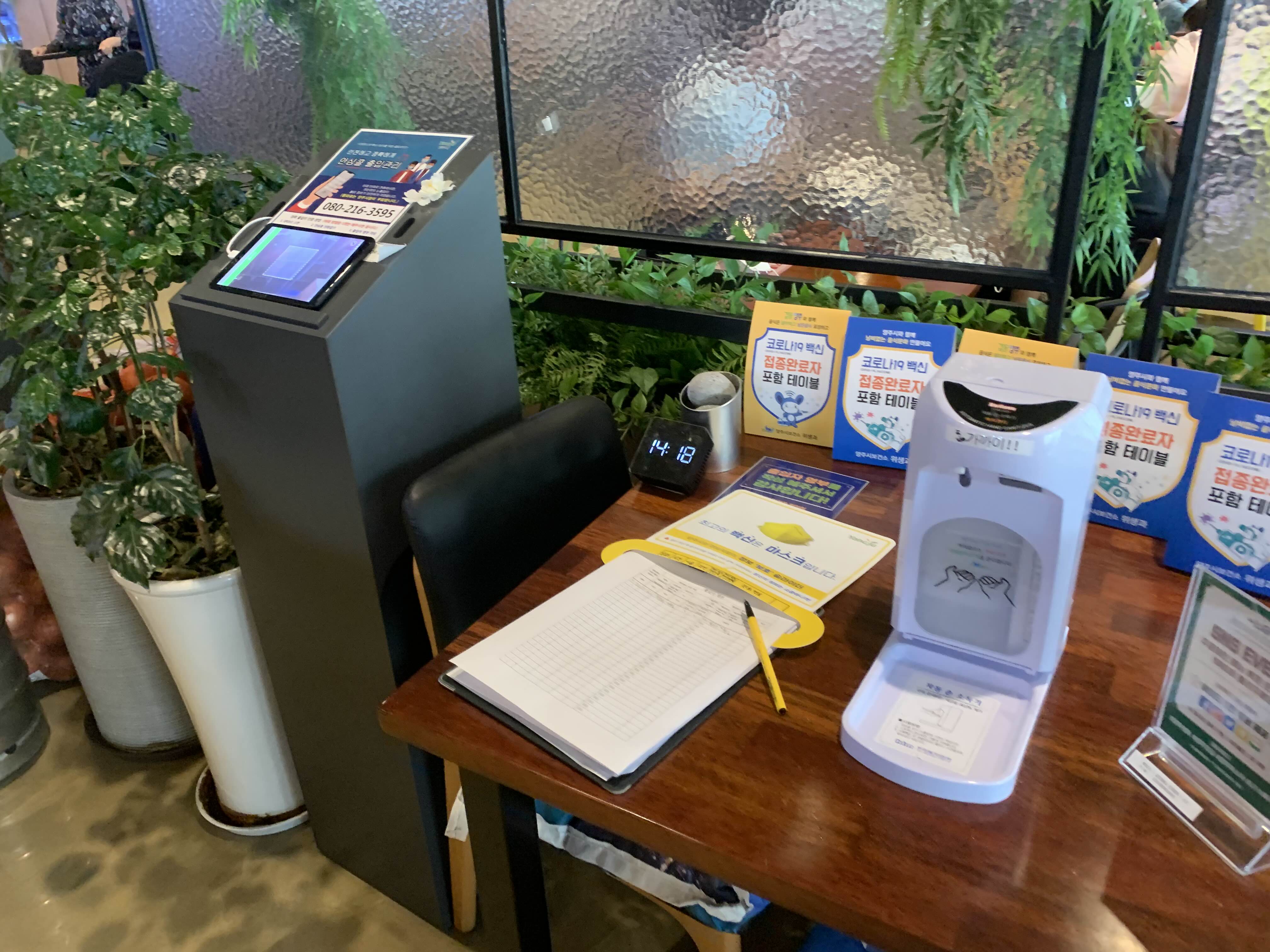 코로나19로 소독과 방문등록을 진행 후 입장!