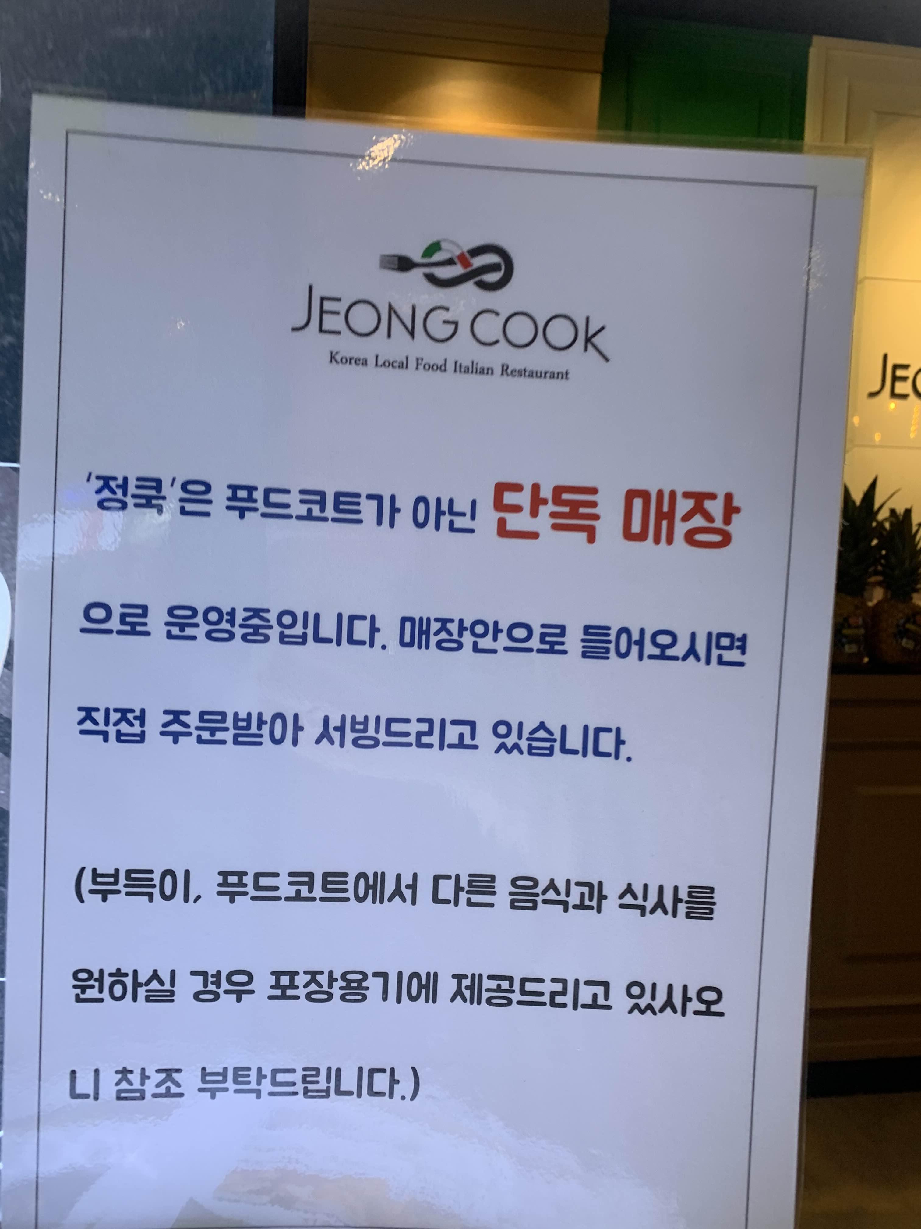 푸드코트 사이에 정쿡은 단독 매장으로