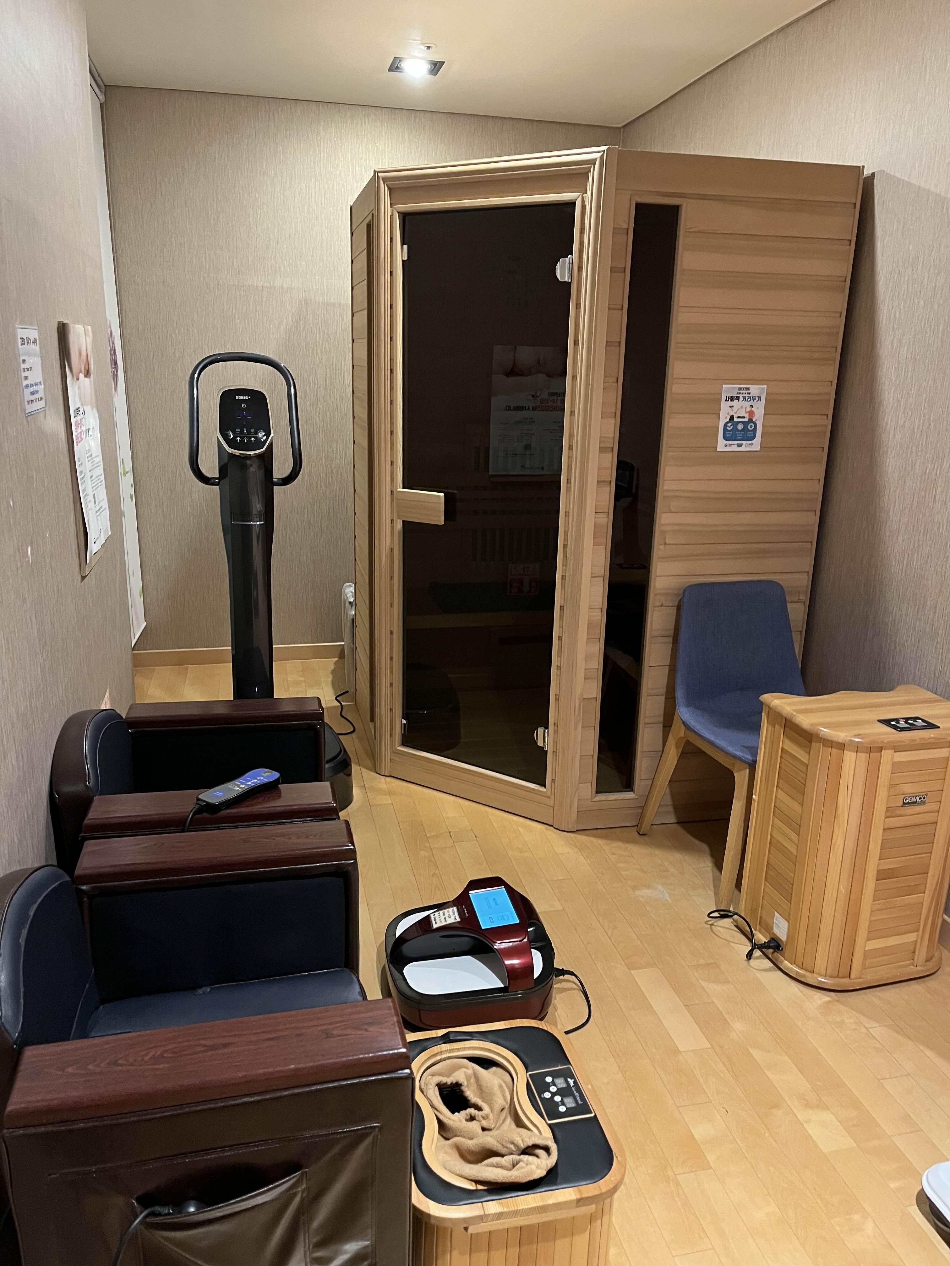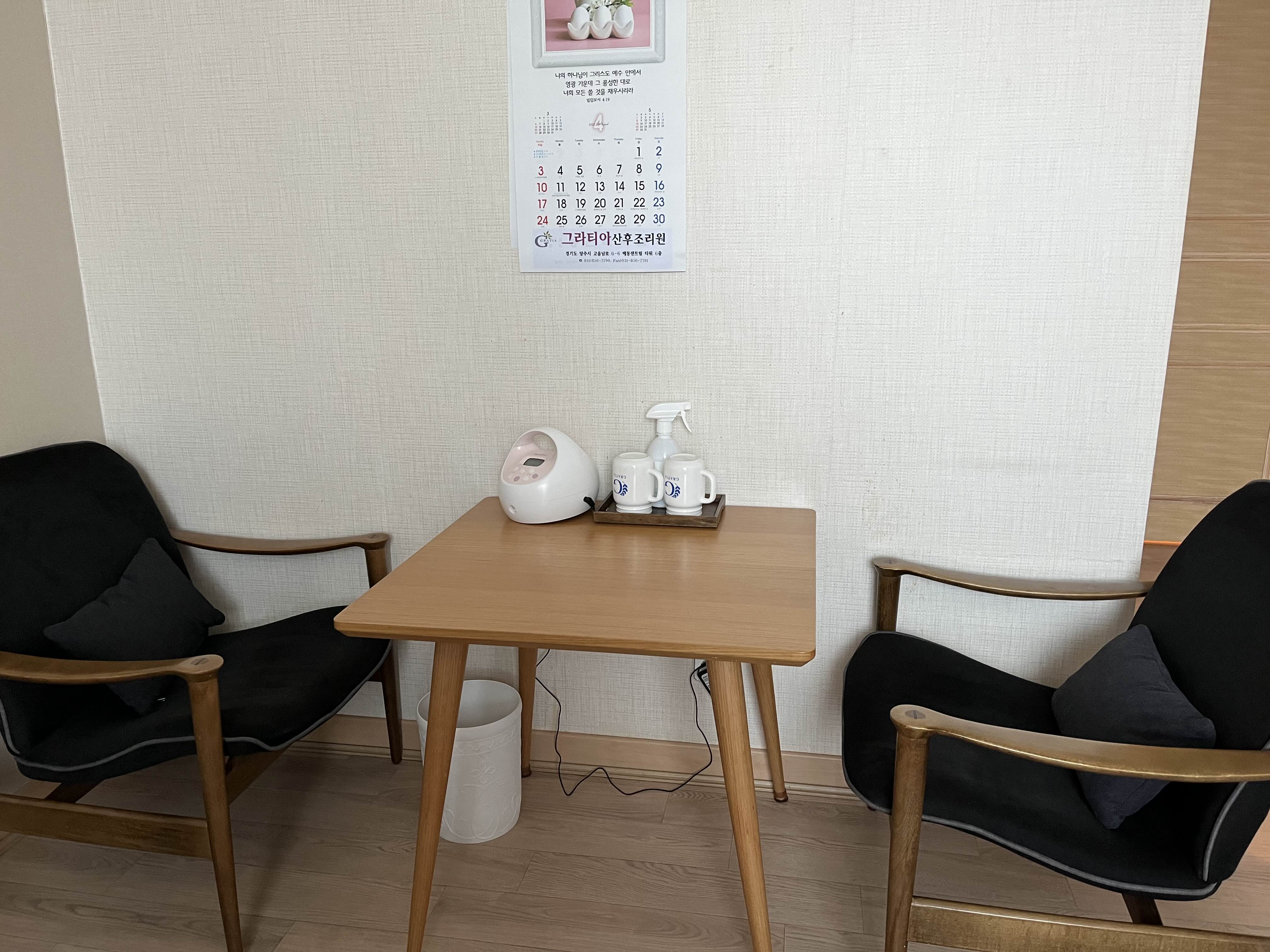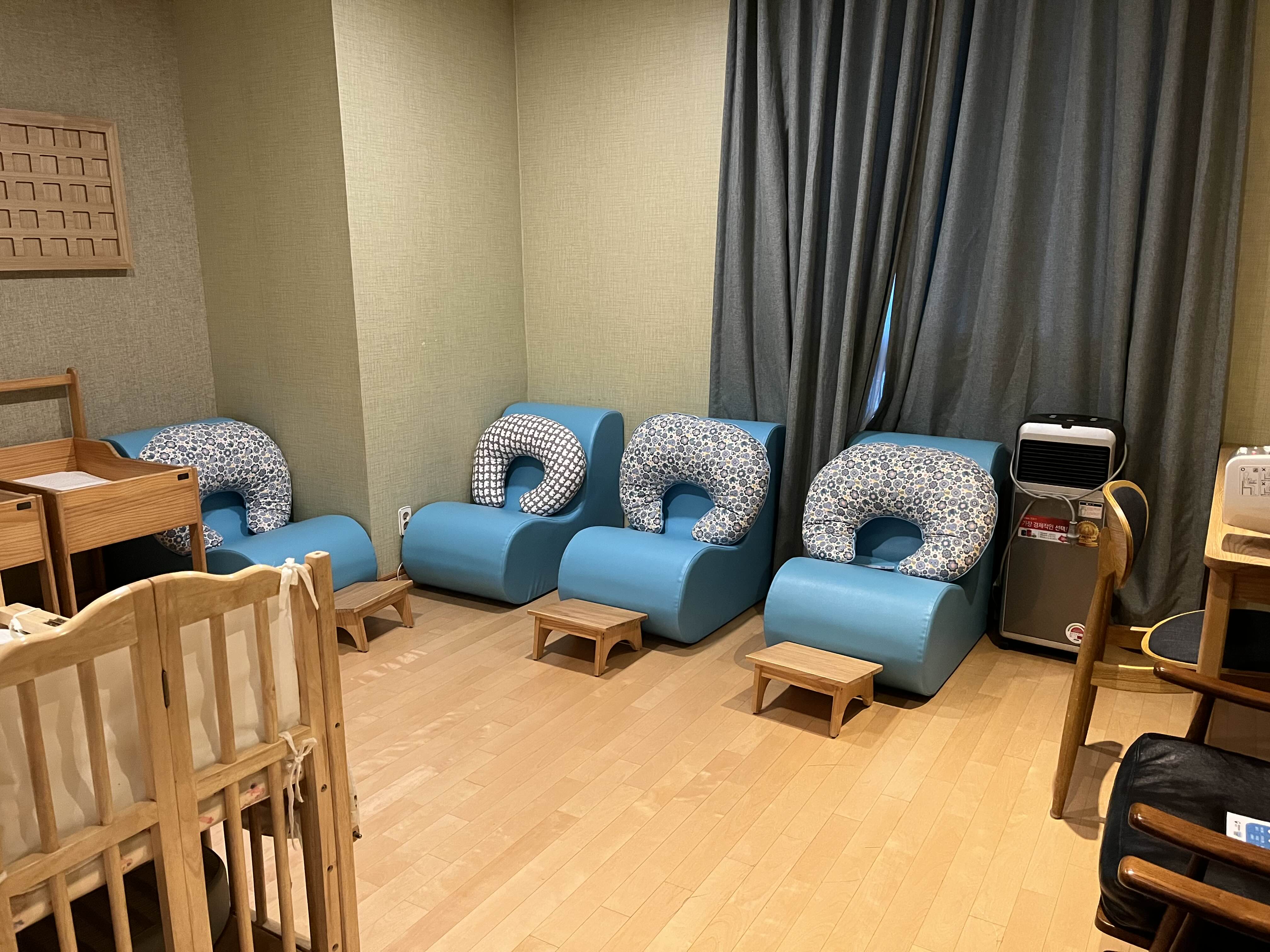 건식 족욕기, 사우나, 인바디 등 산모케어 방과 수유실인데