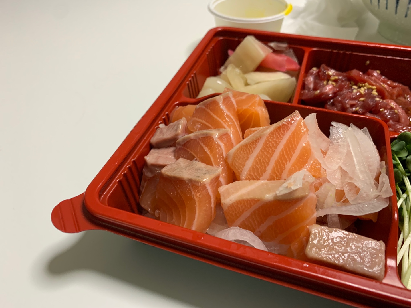 정말 연어가 엄청 두꺼워서 가위로 잘라서 먹었다.