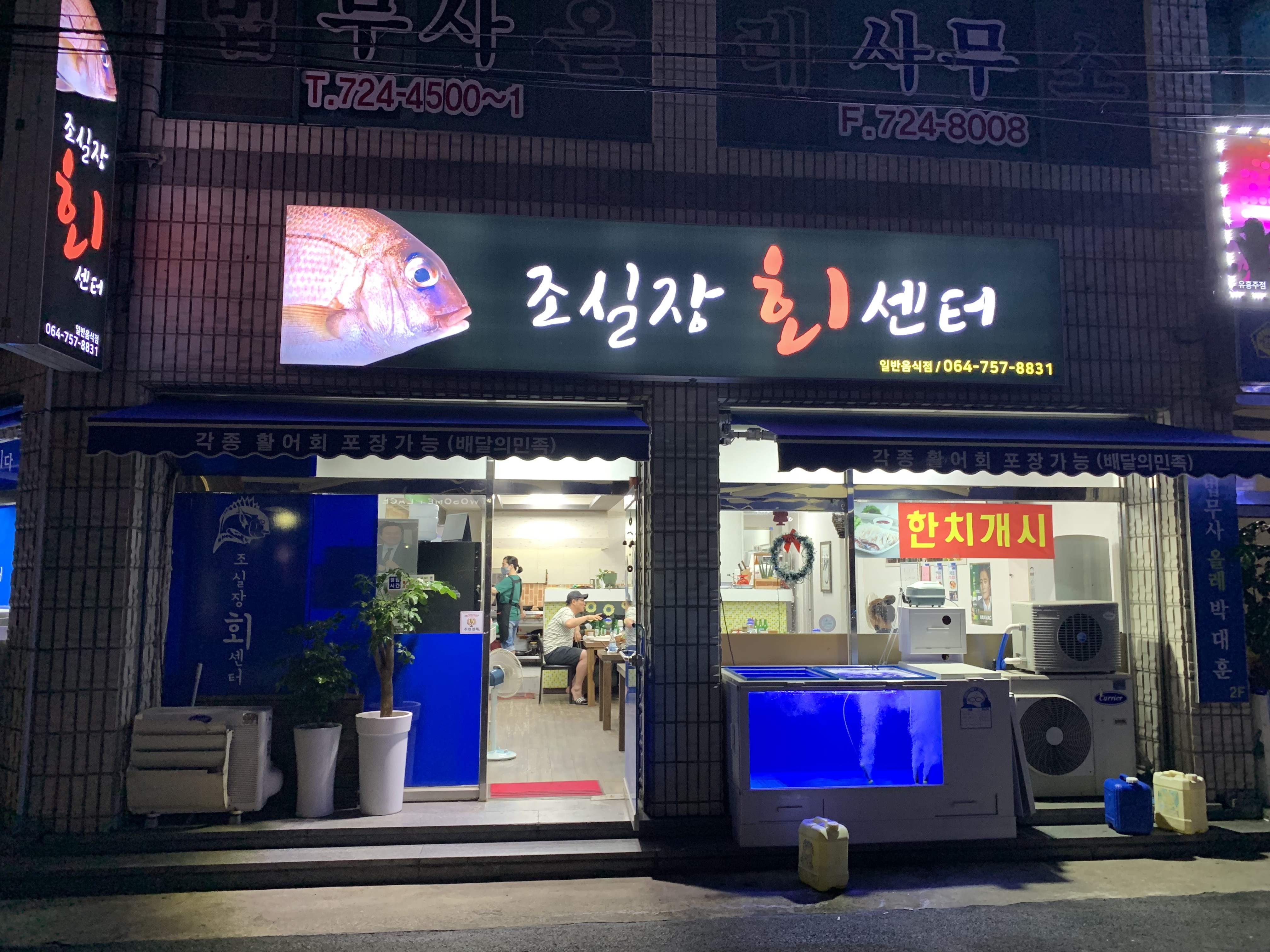 제주도에서의 마지막 밤에 고등어회를 위하여 둘이 돌아다니면서 찾은 횟집 조실장회센터
