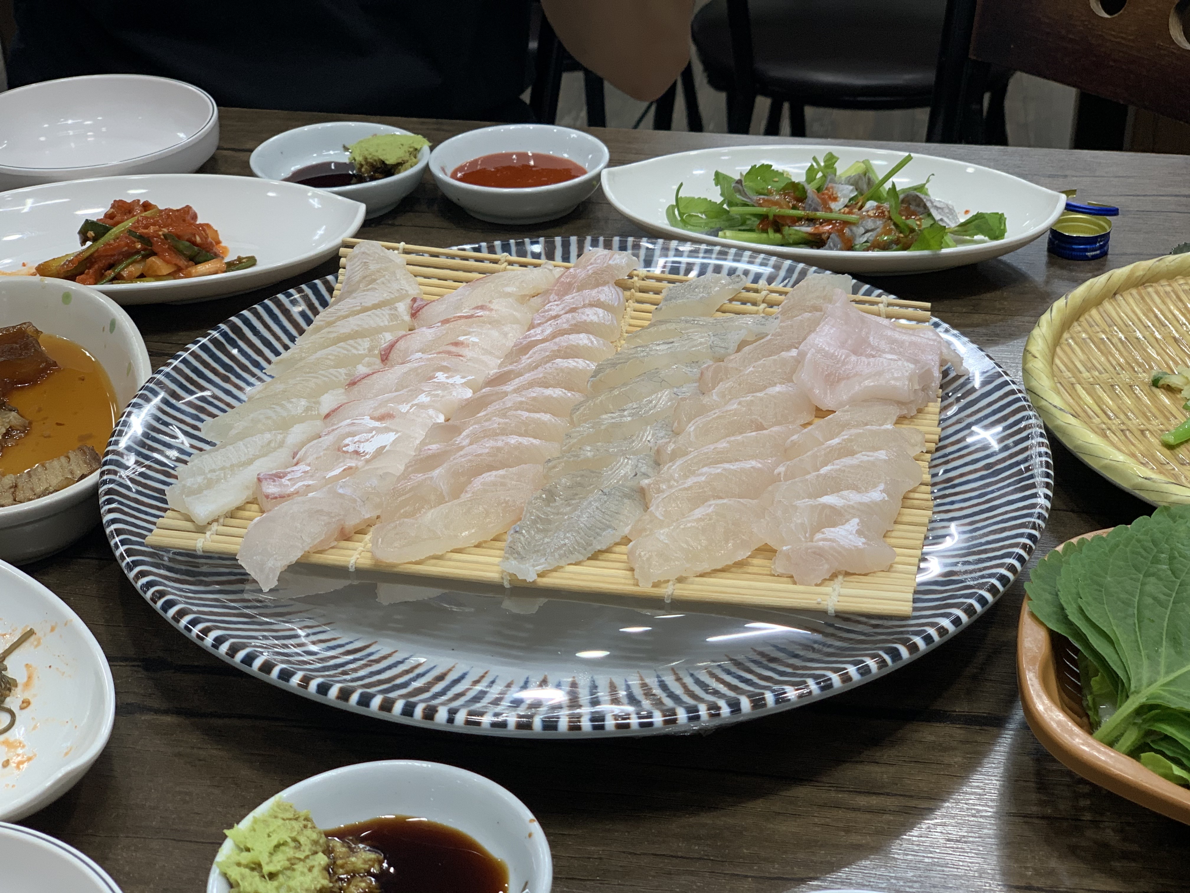공복이라서 활어 물회도 시켰는데 :) 공복이라서 사진도 못 찍고 원샷했어요.